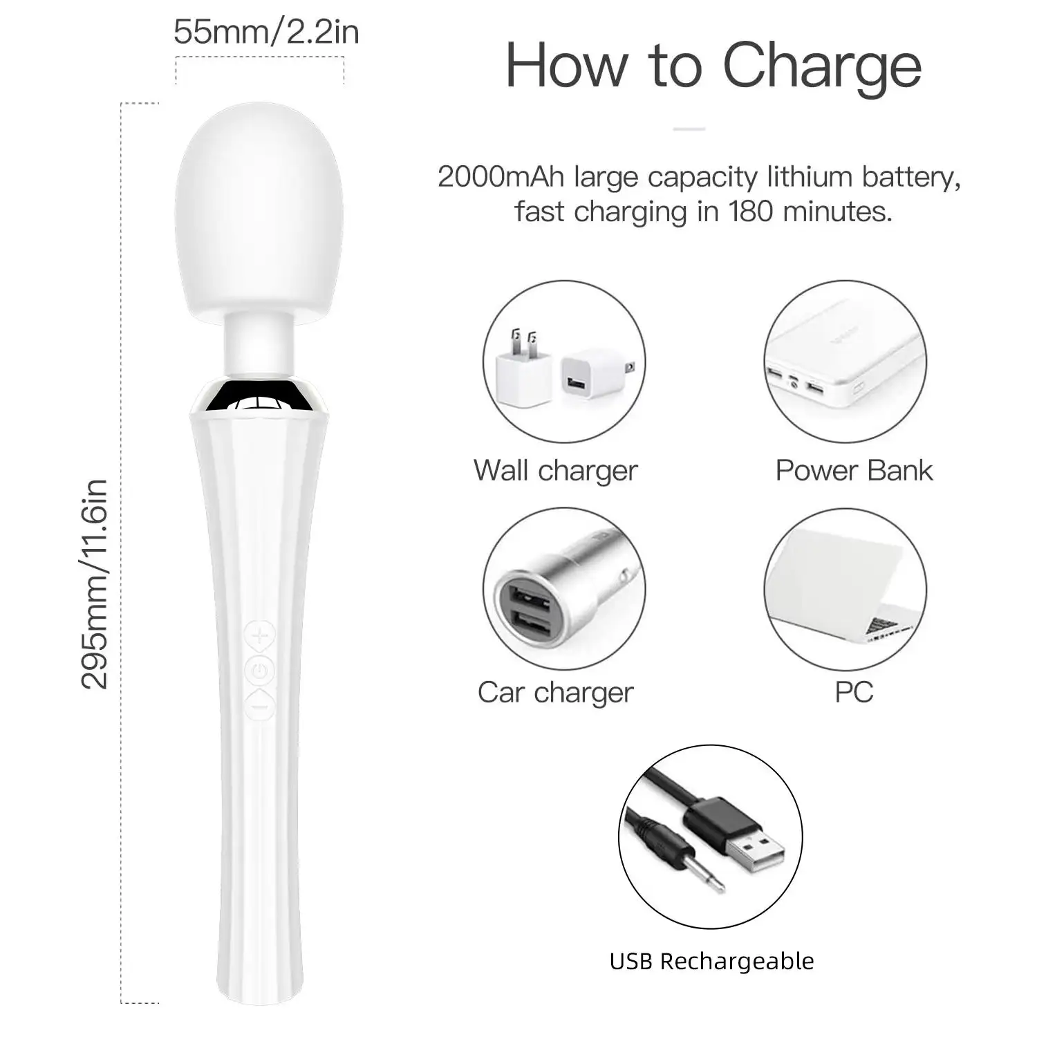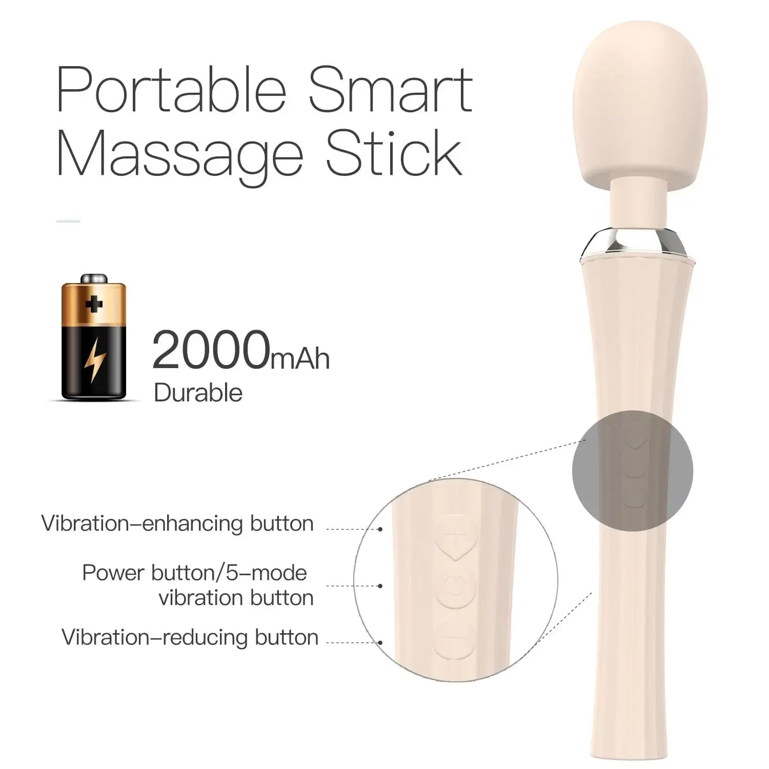 3-speed transmission + 5-frequency modes, motor drive technology, 2000mAh battery, 3 hours of charging, 1.5 hours of use.