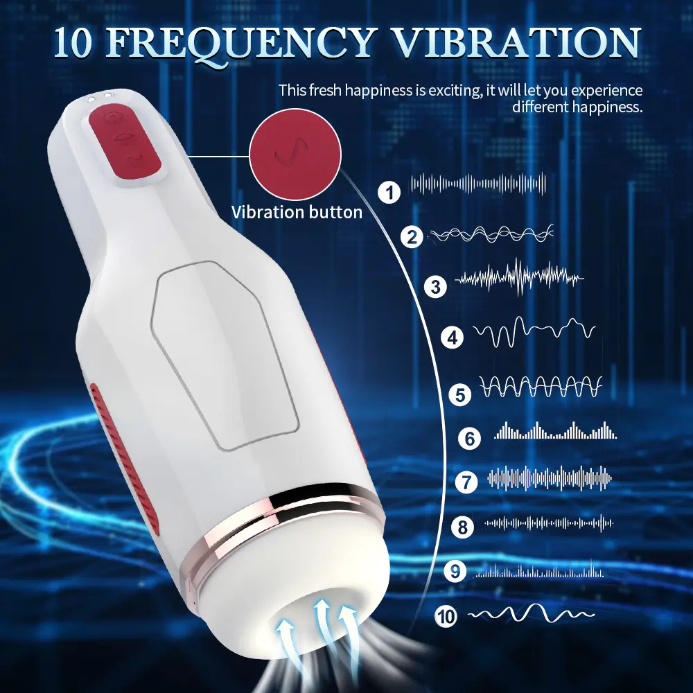Elevate your intimate experience with the 10-Frequency Vibration Pulse Masturbator Cup—a fusion of dynamic stimulation and ergonomic design. Boasting 10 customizable vibration modes (each visualized by distinct wave patterns), this device delivers layered, tailored pleasure at the touch of its intuitive red vibration button.